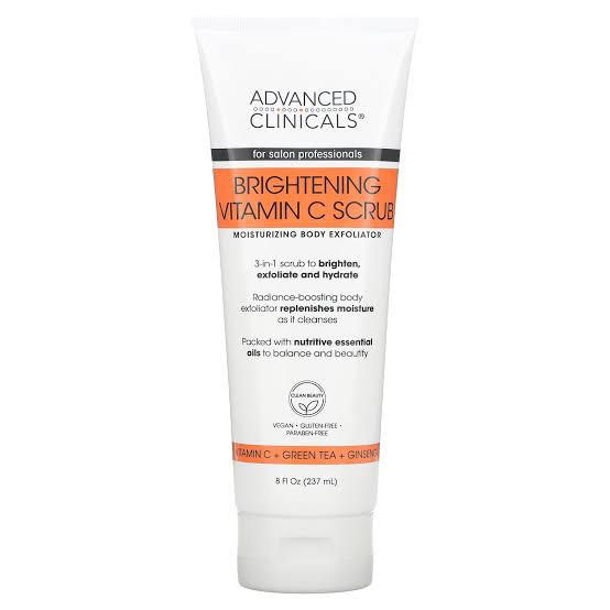 Advanced Clinicals Brightening Vitamin C Body 3-in-1 Scrub – Dark Spot Fighting Moisturizing Body Exfoliator (8fl oz) 237ml