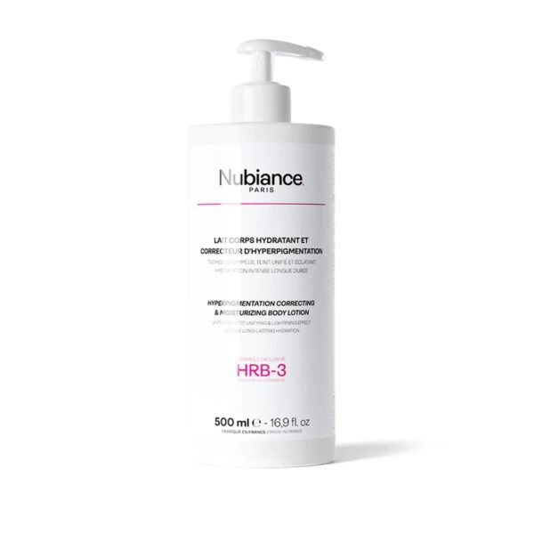 HRB-3® Moisturizing and Hyperpigmentation Correcting Body Lotion from Nubiance Paris is the ideal body care for the skin. It brings hydration, radiance to the skin and reduces hyperpigmentation. It is especially aimed at people with dull, mixed or black complexions. Nubiance Paris Moisturizing Body Lotion and Hyperpigmentation Corrector HRB-3 brings out the beauty of your skin. Nubiance Paris laboratories have developed a formula certified effective in the correction of hyperpigmentation.