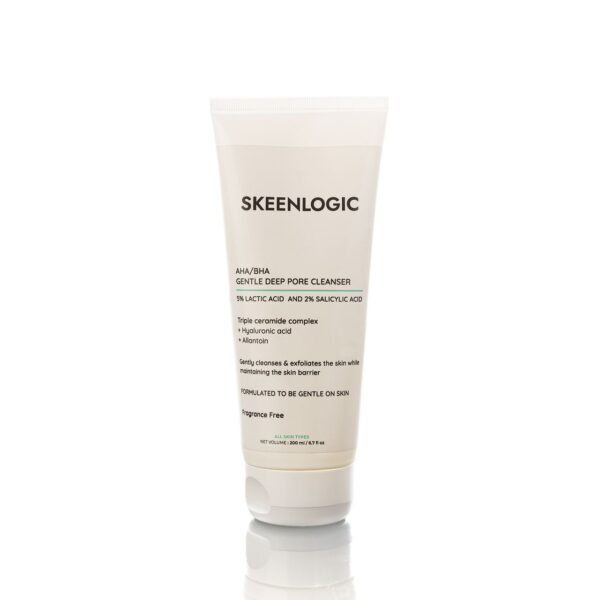 Skeenlogic AHA/BHA Gentle Deep Pore Cleanser with 5% Lactic Acid and 2% Salicylic acid is designed to get rid of dirt and oil that clog pores and lead to acne. It can also help break down makeup and other cosmetics that could lead to breakouts if left on the skin.